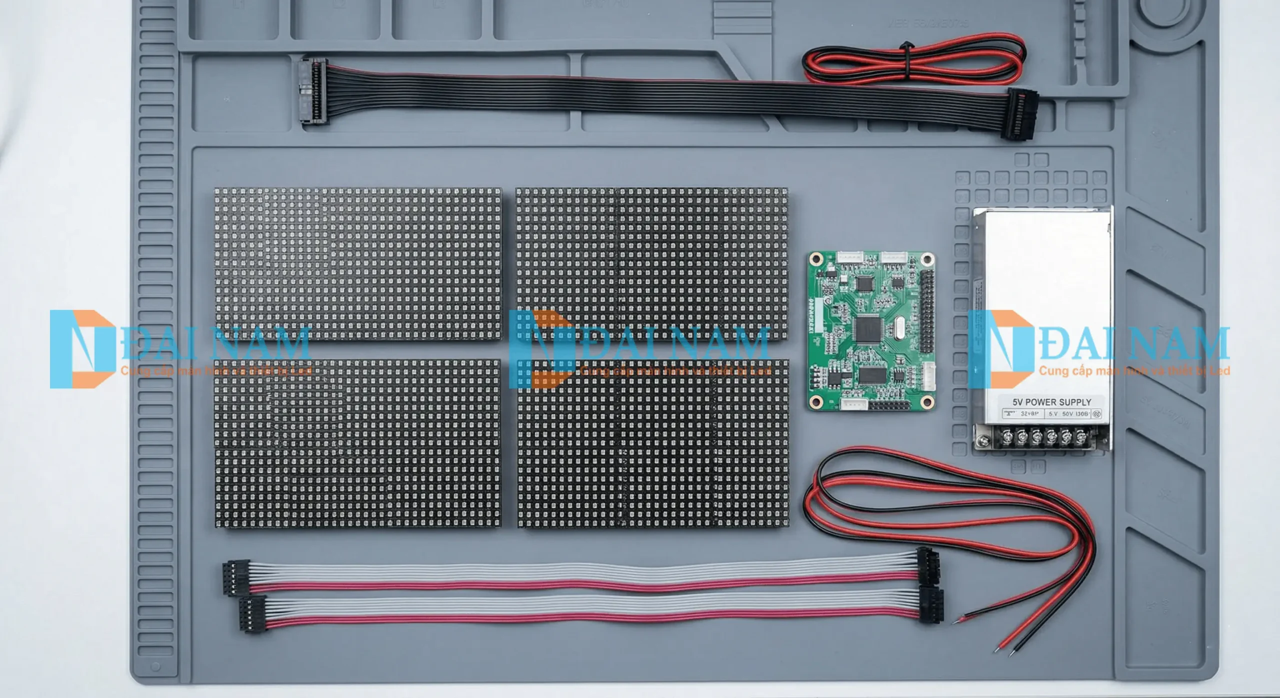 Một màn led P3.076 hoàn chỉnh không chỉ có tấm module. Nó là sự kết hợp của một hệ sinh thái linh kiện phức tạp. Một hệ thống tiêu chuẩn bao gồm: