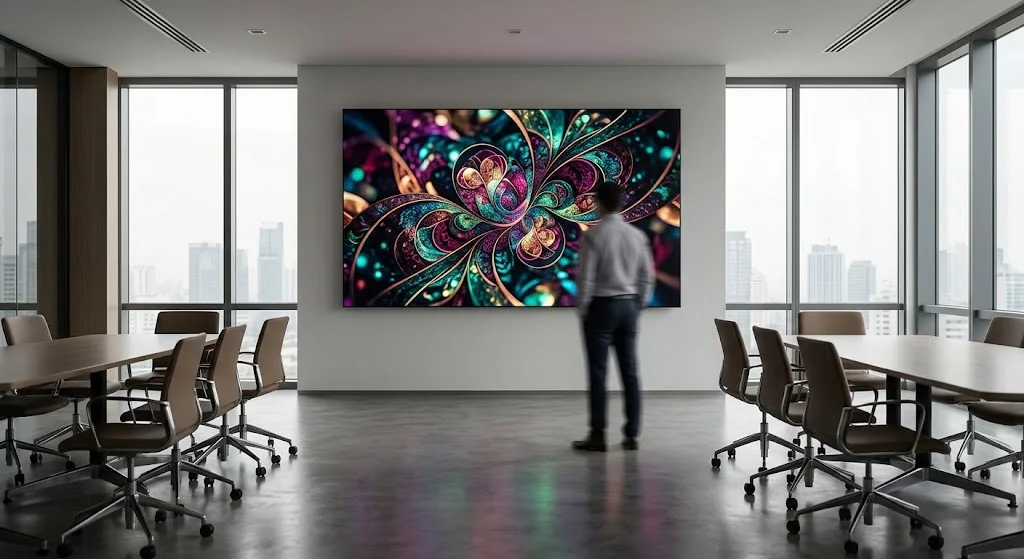 Màn hình P3 sở hữu cường độ sáng vượt trội trên 1000 cd/m² cùng độ tương phản tĩnh cực cao. Nghĩa là trong các phòng họp mở toang cửa sổ hoặc bật toàn bộ hệ thống đèn trần, hình ảnh và văn bản trên màn hình LED vẫn hiển thị sắc nét, hoàn toàn ăn đứt tình trạng mờ nhạt, lóa sương của các dòng máy chiếu truyền thống. (Dữ liệu so sánh độ rọi thực tế từ 300+ phòng họp đã triển khai).