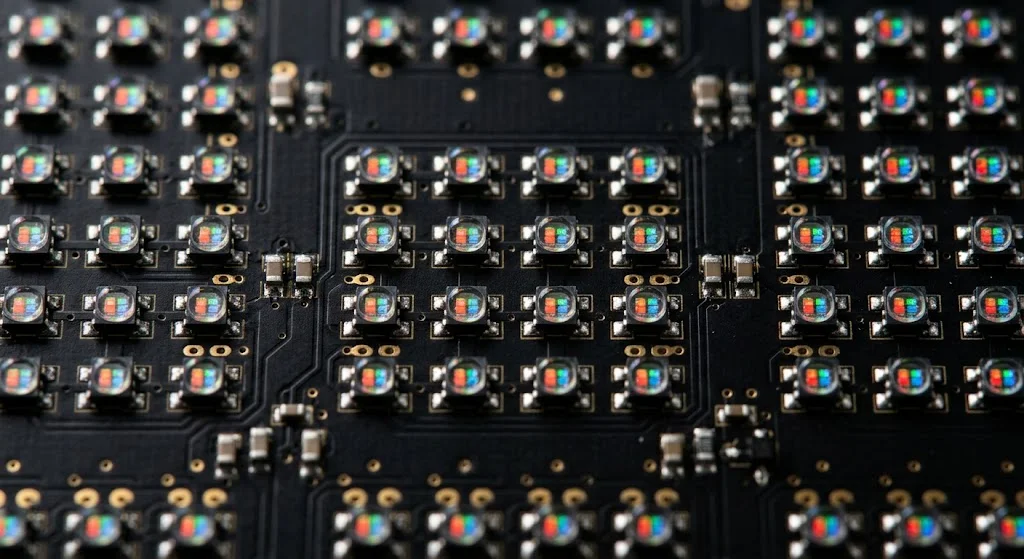 Bóng LED (nhân LED) là thành phần phát sáng trực tiếp, chiếm đến 60% giá trị của tấm màn hình. Các loại bóng SMD (Surface Mount Device) tiêu chuẩn có sự khác biệt rất lớn về công nghệ đóng gói, vật liệu tản nhiệt, dẫn đến tỷ lệ chết điểm ảnh (đốm đen) khác nhau sau một thời gian chạy liên tục.
