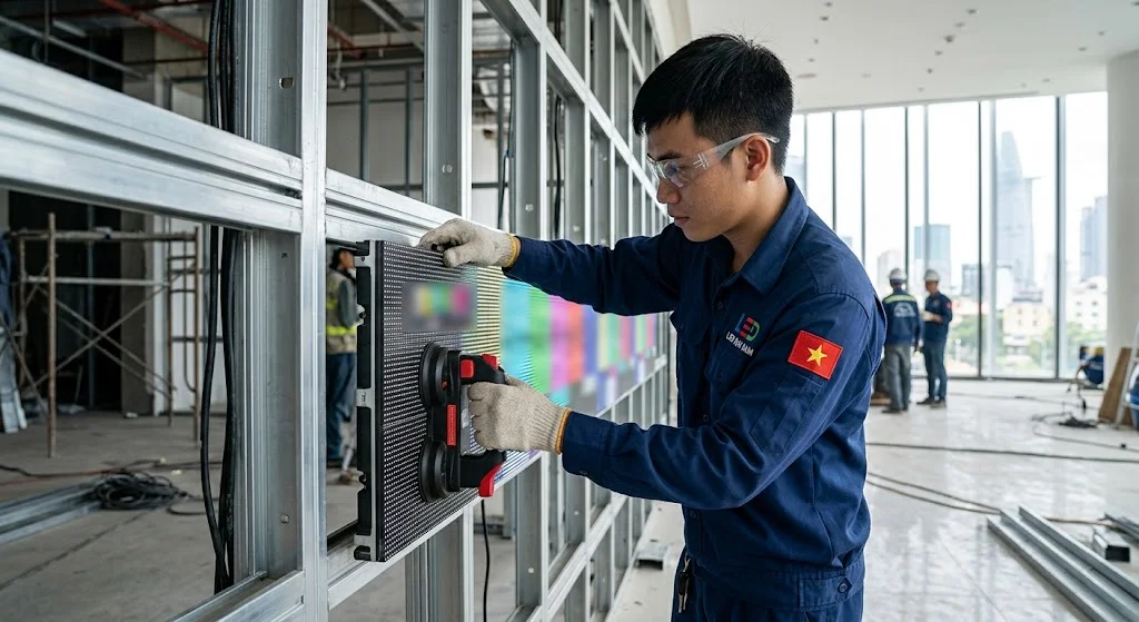Việc chuẩn bị hạ tầng đúng thông số giúp đảm bảo an toàn kết cấu tuyệt đối, ngăn ngừa hiện tượng sập vách kiến trúc sau khi nghiệm thu. Tại Công ty LED Đại Nam, chúng tôi áp dụng bộ tiêu chuẩn thi công nội bộ khắt khe nhằm phối hợp nhịp nhàng với các nhà thầu nội thất. (Dữ liệu đúc kết từ 300+ dự án triển khai thực tế).