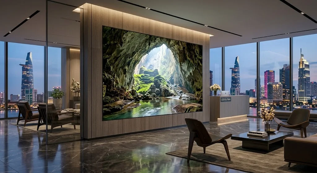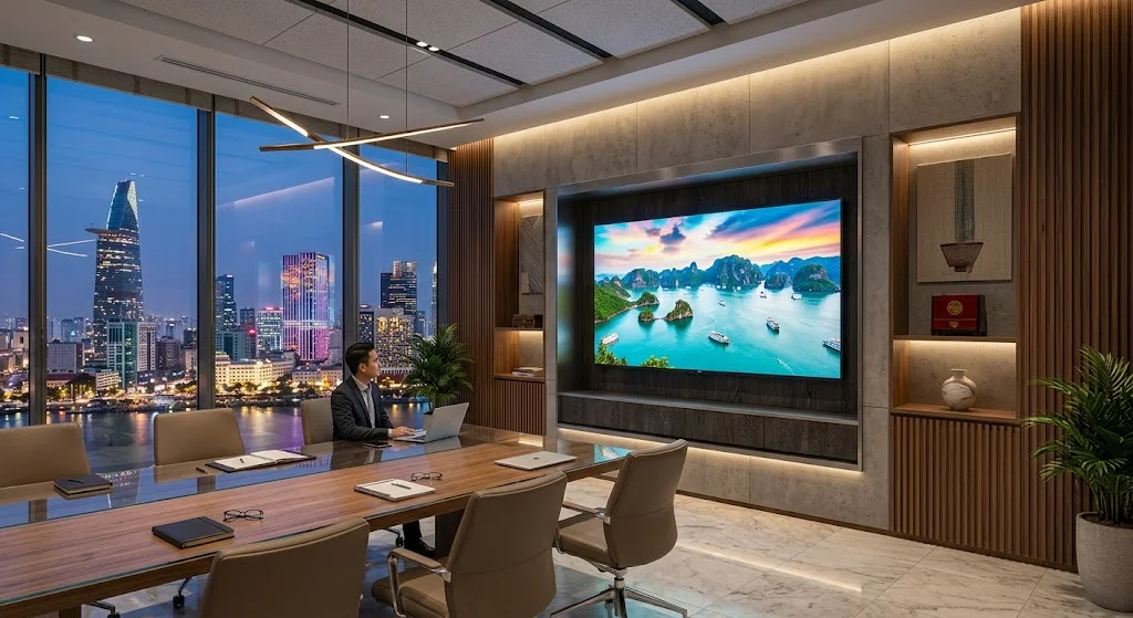 Lựa chọn màn hình LED P3 là phương án cân bằng nhất cho phòng họp trên 30m2 nhờ giá thành thấp hơn 30-50% so với dòng P2 trong khi vẫn đảm bảo độ nét tiêu chuẩn.
