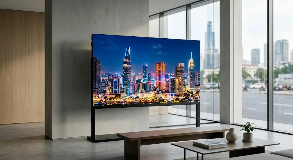Trong quá trình khảo sát, tôi thường thấy nhiều đơn vị lắp đặt theo kích thước “vừa khít” ô tường mà quên mất tỉ lệ hiển thị. Ví dụ, nếu Anh/Chị lắp màn hình ngang 4m mà cao chỉ 1.5m, khi chiếu Slide PowerPoint, hình ảnh sẽ bị co lùn rất khó chịu. Công thức của tôi là lấy chiều ngang chia cho 1.77 để ra chiều cao lý tưởng. Nếu ô chờ thực tế không cho phép, chúng tôi sẽ tư vấn phương án cài đặt vùng hiển thị thông minh để bảo toàn tỉ lệ nội dung gốc cho khách hàng.