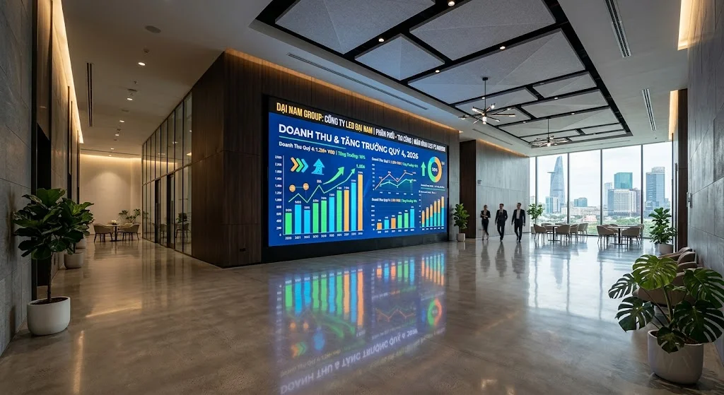 Theo dữ liệu từ các dự án tại Hà Nội và TP.HCM giai đoạn 2024-2026 của Đại Nam, hơn 65% doanh nghiệp chọn P3 cho hội trường từ 50-100 người. Đây là giải pháp cân bằng nhất giữa chi phí đầu tư và chất lượng hiển thị nội dung văn bản.