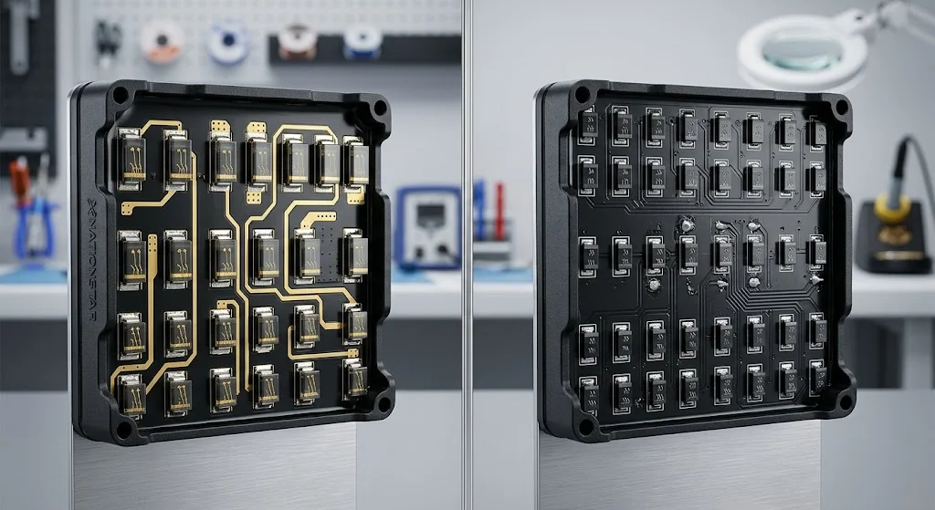 Tôi biết Anh/Chị sẽ thắc mắc tại sao cùng là dòng P4 mà giá lại chênh lệch đến vài triệu đồng mỗi mét vuông. Câu trả lời nằm ở “trái tim” của màn hình: Chip LED và IC Driver. Những dòng giá rẻ thường sử dụng bóng LED gia công và IC Driver đời thấp, dẫn đến hiện tượng màn hình bị loang lổ màu (chết điểm ảnh) hoặc bị sọc khi quay phim bằng điện thoại chỉ sau 1 năm sử dụng.