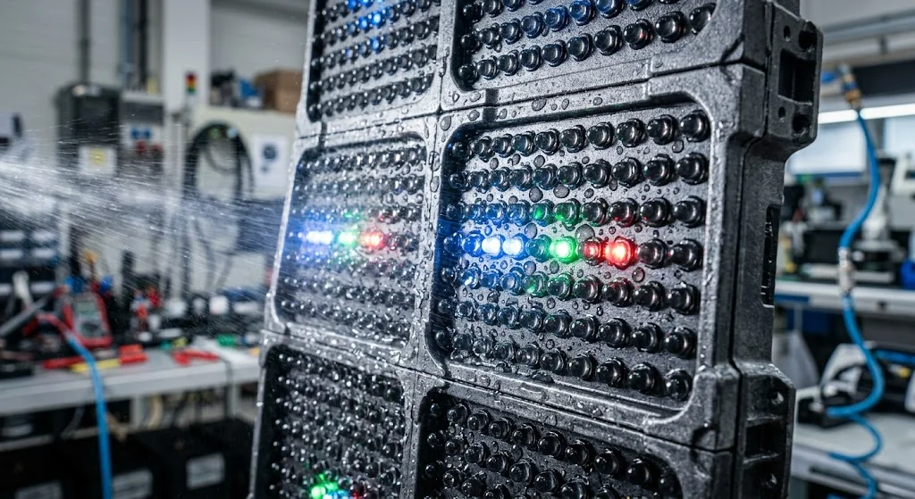 Để một hệ thống hiển thị hoạt động bền bỉ dưới cái nắng gay gắt của miền Nam hay mùa mưa tầm tã của miền Bắc, các chỉ số kỹ thuật không chỉ là con số trên catalogue mà là rào cản bảo vệ tài sản của Anh/Chị. Tôi luôn nhấn mạnh vào tiêu chuẩn IP65 — nghĩa là thiết bị kháng bụi hoàn toàn và chịu được tia nước áp lực từ mọi hướng. Nếu không đạt chuẩn này, bảng mạch bên trong sẽ nhanh chóng bị oxy hóa, dẫn đến hiện tượng màn hình loang lổ chỉ sau 1-2 mùa mưa.
