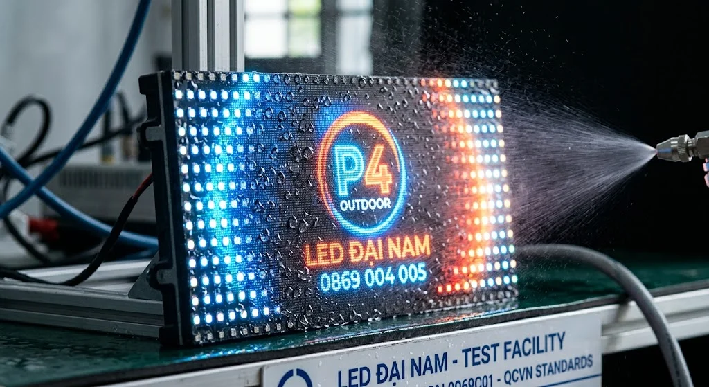 Cập nhật Tháng 04/2026: Màn hình LED P4 ngoài trời là thiết bị quảng cáo có khoảng cách điểm ảnh 4mm, mật độ 62.500 dots/m2 và độ sáng đạt trên 5500 nits. Giá thi công trọn gói dao động từ 11.000.000đ đến 17.500.000đ/m2 tùy loại chip Nationstar hay Kinglight. Sản phẩm đạt tiêu chuẩn chống nước IP65, phù hợp khoảng cách nhìn từ 4m và có thời gian thi công hoàn thiện từ 7 đến 15 ngày.