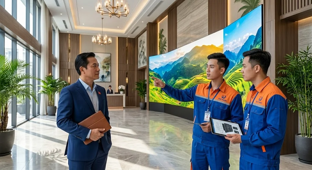 Tôi luôn sẵn sàng dẫn Anh/Chị đi tham quan thực tế tại các dự án gần nhất để đánh giá tận mắt chất lượng hiển thị và thi công của LED Đại Nam.