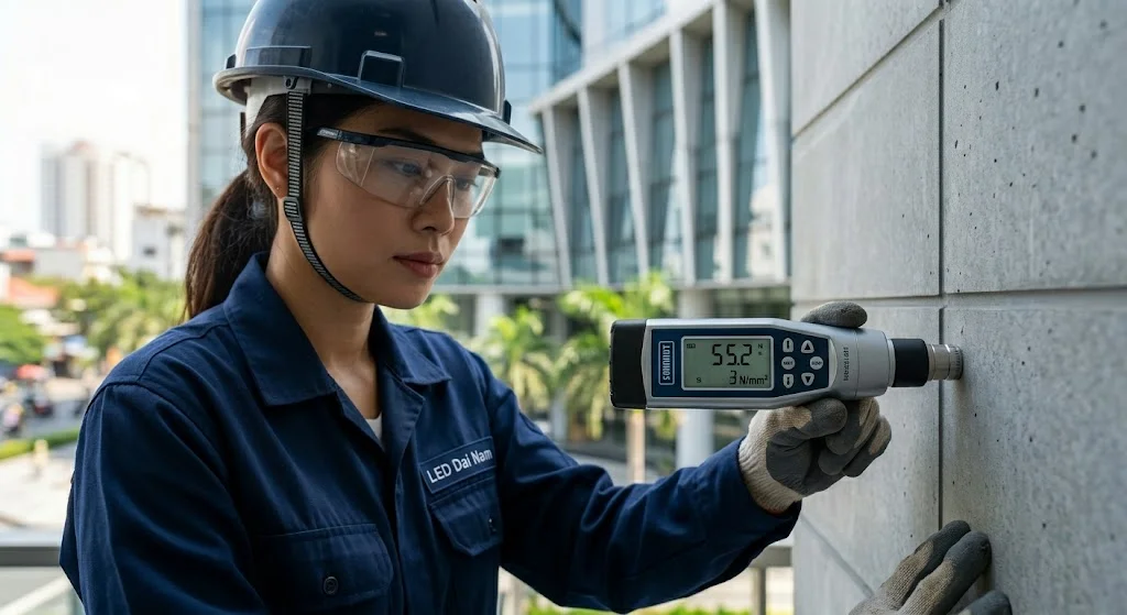 Tại LED Đại Nam, tôi luôn yêu cầu đội ngũ kỹ thuật đối soát mã số phòng thí nghiệm trên cổng thông tin điện tử của Bộ Xây dựng trước khi liên kết thực hiện dự án. Anh/Chị khi tìm kiếm đối tác cũng nên lưu ý điểm này: một phòng Lab đủ năng lực sẽ có đầy đủ các chứng chỉ vận hành thiết bị siêu âm cốt thép, máy nén mẫu thủy lực và các phép thử chuyên sâu.